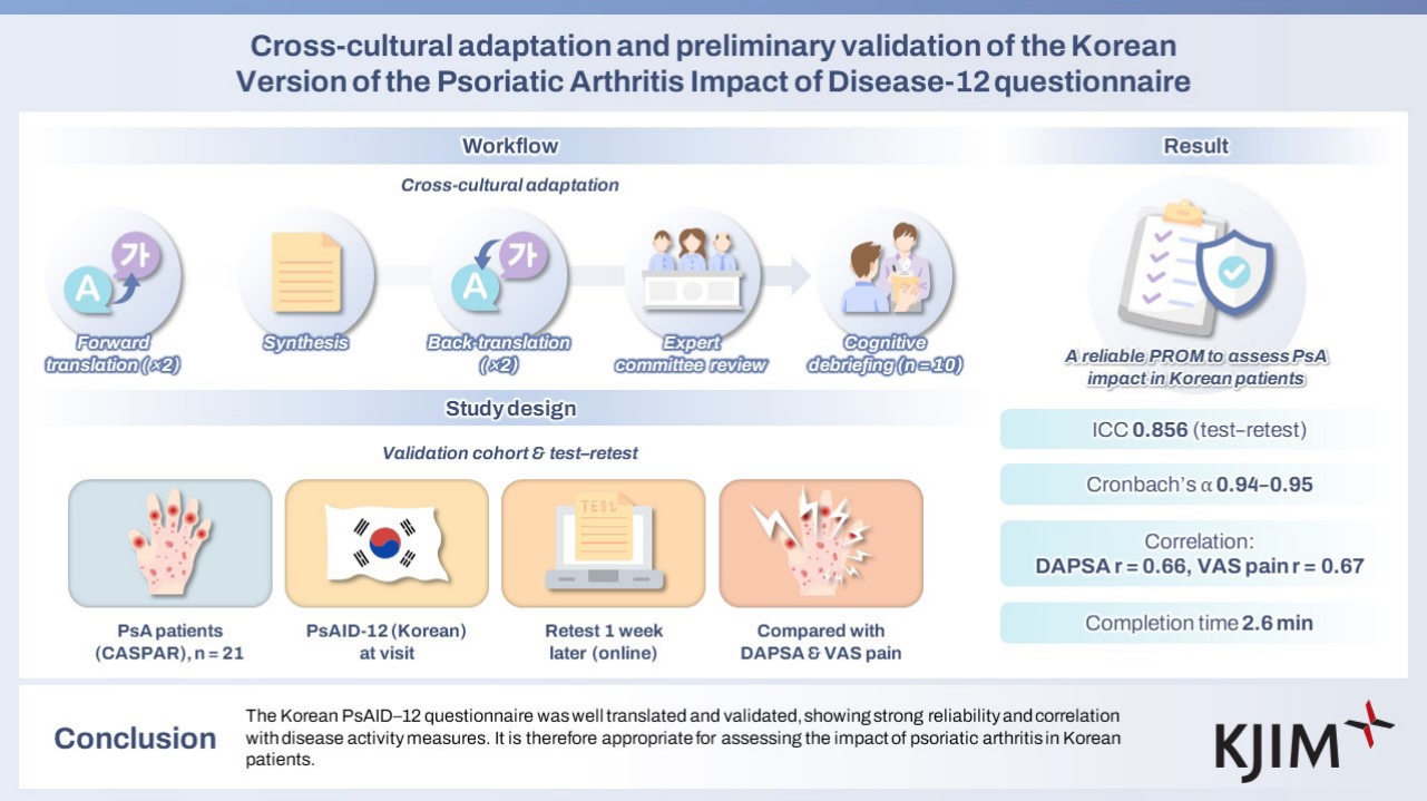 Cross-cultural adaptation and preliminary validation of the Korean version of the Psoriatic Arthritis Impact of Disease-12 questionnaire