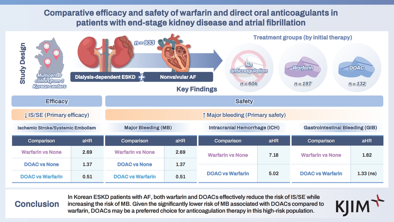 Comparative efficacy and safety of warfarin and direct oral anticoagulants in patients with end-stage kidney disease and atrial fibrillation