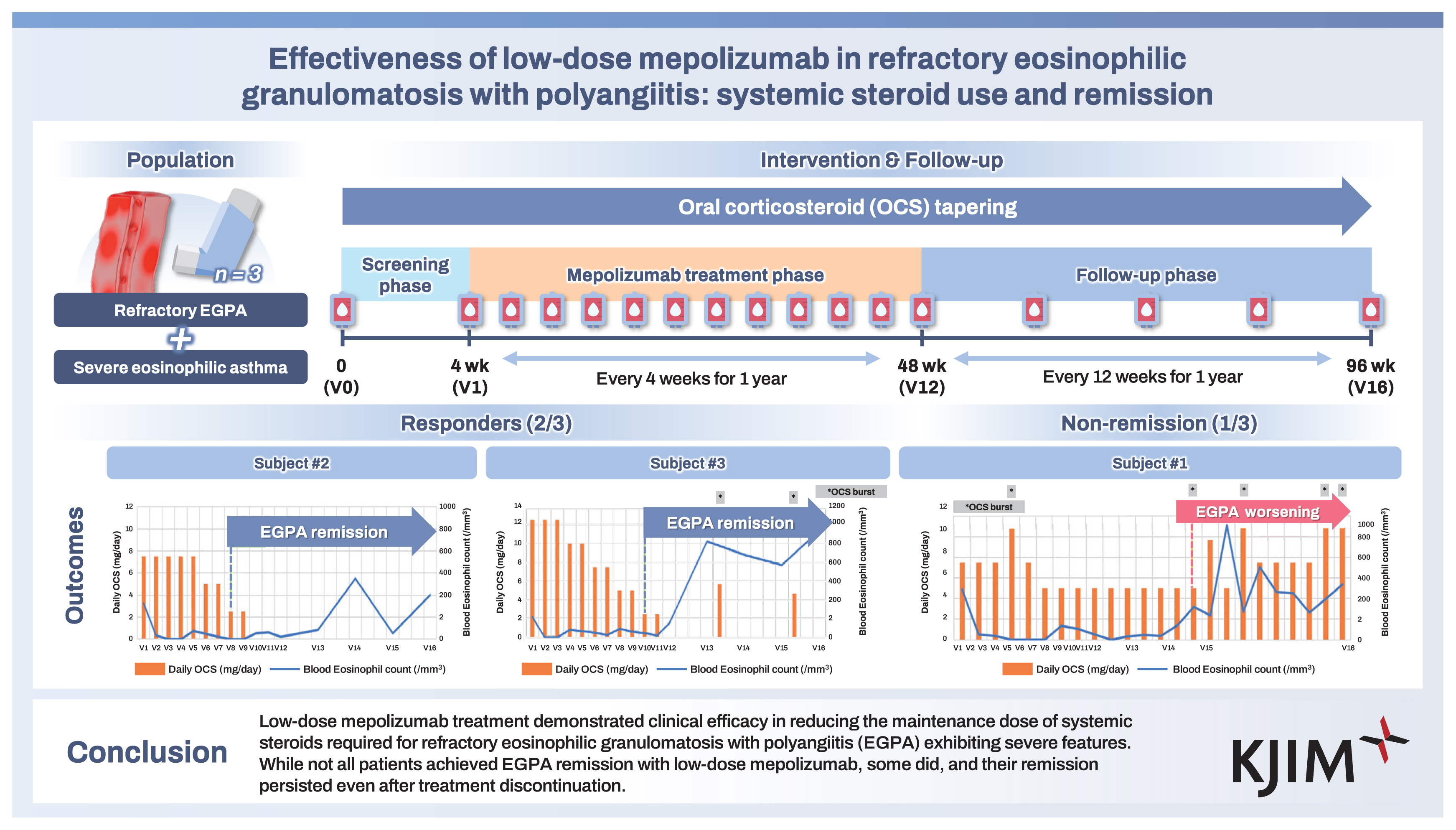 Effectiveness of low-dose mepolizumab in refractory eosinophilic granulomatosis with polyangiitis: systemic steroid use and remission