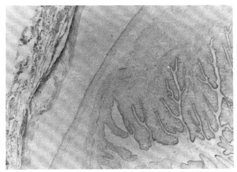 Cross section of C. cellulosae shows the fully differentiated parenchymatous portion and the still separated bladder of the cysticercus.