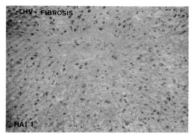 The report about the histopatholgic comparison between 86 cases of hepatitis A and 76 cases of NANB hepatitis published by Krager and Christoffersen20) revealed that hepatitis A was charcterized by more pronounced portal inflammations than hepatitis NANB, but less conspicuous parenchymal changes such as focal nerosis, Kupffer cell proliferations, acidophilic bodies and ballooning change of hepatocytes. Steatosis occurred in 10% of hepatitis A compared with 26% in hepatitis NANB. Jove et al.21) analyzed retrospectively the clinical, morphological and evolutive features of 60 patients with chronic hepatitis NANB and found that there were some differences in morphological categories between sporadic and transfusion related cases. Takada et al.22) reported that there are at least two or more types of acute NANB hepatitis. In one type hepatocyte necrosis was prominent in the periportal area (portal type), and in the other there was no such characteristic distribution of hepatocyte necrosis (non-portal or diffuse type). Takase et al.22) also stressed that a histological analysis of the liver is important in order to distingish between the types of acute NANB hepatitis.