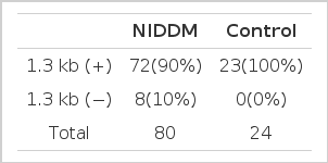 These result may suggest the following hypothesis. The NIDDM patient of negative 1.3 kb allele of glucokinase gene may have the defect of hepatic glucokinase gene.