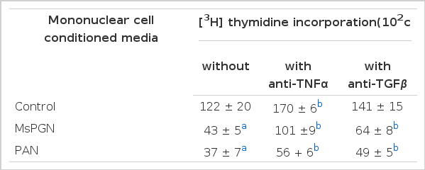 Therefore, this study was performed to observe the direct effects of conditioned media (CM) of cultured MNC on the expression of β1 integrin and ICAM-1 on mesangial cells, together with thymidine incorporation, and the modulation by TGF-β, TNFα, or hydroxyl radical on these was investigated. Also these were examined in anti-Thy mesangial proliferative GN(MsPGN) or puromycin aminonucleoside nephrosis(PAN).