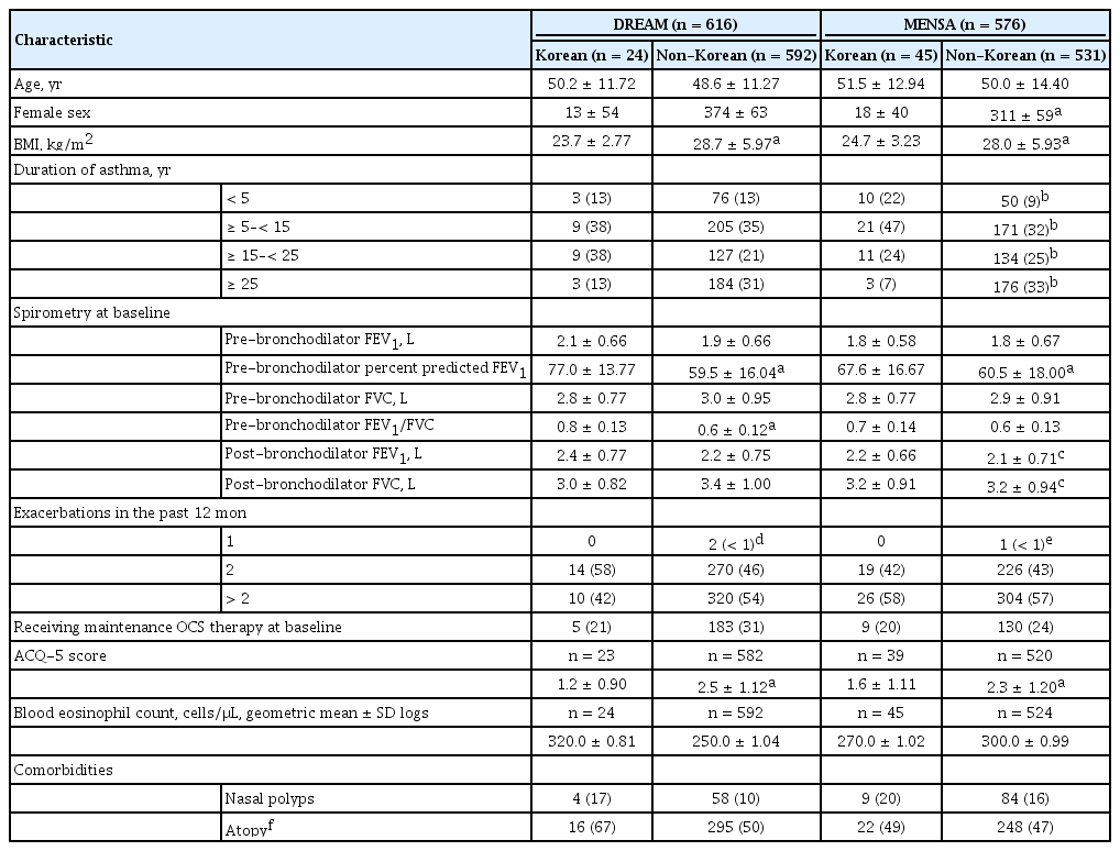 Efficacy and safety of mepolizumab in Korean patients with severe eosinophilic asthma from the DREAM and MENSA studies