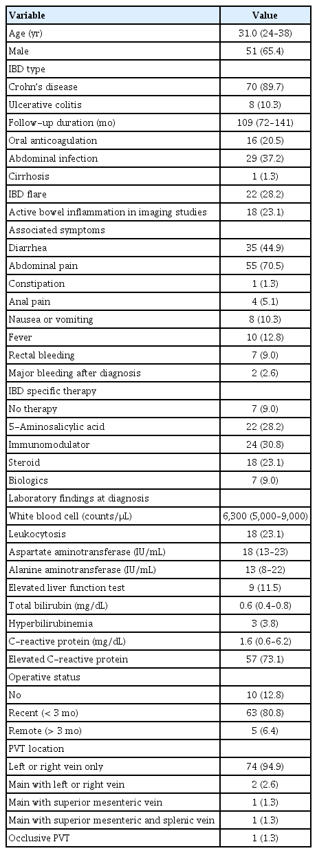 Characteristics and outcomes of portal vein thrombosis in patients with inflammatory bowel disease in Korea