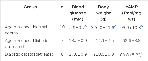 Effect of Cilostazol on Body Weight, Blood Glucose and cAMP Contents of Sciatic Nerves